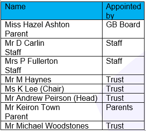 Our governing body is made up of members from the local community, including parents, representatives from partnership groups/organisations and staff. The governing body are responsible for overseeing the educational direction of the school to ensure all our students achieve as well as they can.
